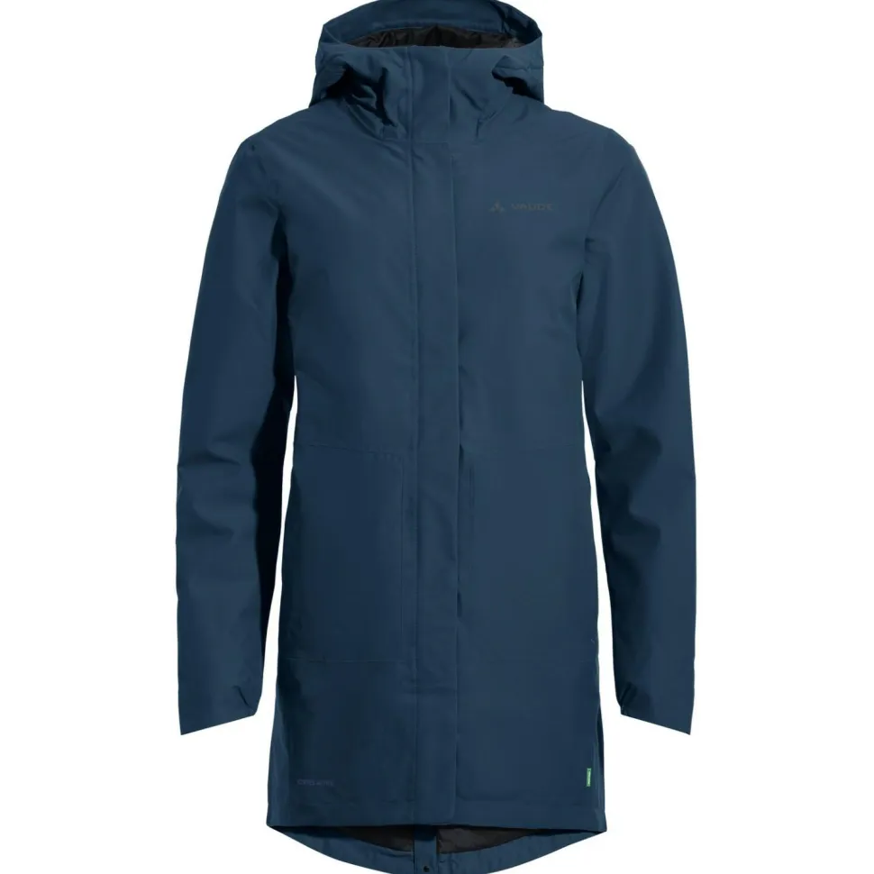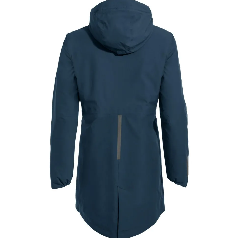 Schön lang geschnitten und mit femininer Linie zeigt sich der Women’s Cyclist Padded Parka II von Vaude!