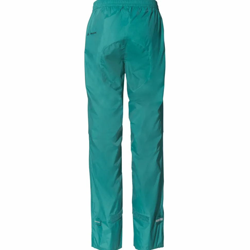 Ob unterwegs mit dem Tourenrad oder auf dem Weg ins Büro – die Vaude Women’s Drop Pant bietet zuverlässigen Regenschutz wenn Handhabung und Packmaß zählen. Die Regenhose für Alltags-Bikerinnen überzeugt mit sinnvollen Details und guter Ausstattung. Ihr 2,5-Lagen Ceplex Active Material ist zuverlässig wasser- und winddicht und zudem hoch atmungsaktiv. Der sportliche Schnitt mit vorgeformten Knien und in der Weite regulierbaren Beinabschlüsse sorgen für perfekten Sitz ohne einzuschränken. Reflektierende Elemente an Vorder- und Rückenteil machen bei schlechten Lichtverhältnissen auf die Trägerin aufmerksam. Wird sie nicht benötigt, ist sie im mitgelieferten Packbeutel aufgehoben. So kann beim plötzlichen Wetterumbruch entspannt und gut geschützt weiter in die Pedale getreten werden. Die Regenhose zum Biken trägt das Vaude Greenshape-Gütesiegel und ist bluesign zertifiziert. Das bedeutet, dass in ihrer Entwicklung und Herstellung besonders hohen Wert auf möglichst umweltverträgliche Materialien und Nachhaltigkeit gelegt wurde. Die sehr leichte Vaude Women’s Drop Pant ist damit immer guten Gewissens im Gepäck!