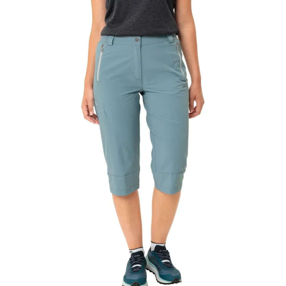 An sommerlichen Tagen ist die Trekkinghose Women’s Farley Stretch Capri III von Vaude der ideale Partner! Der Materialmix leitet Feuchtigkeit zügig nach außen ab und trocknet schnell. Zudem ist die Hose elastisch und kommt mit vorgeformten Knien daher, damit Du Dich in alpinem Gelände gut bewegen kannst. Bei Bedarf kannst Du den elastischen Bund mit einem Gürtel ergänzen. Die verschließbaren Taschen sind praktisch für Kleinigkeiten. Komfortabel und durchdacht!