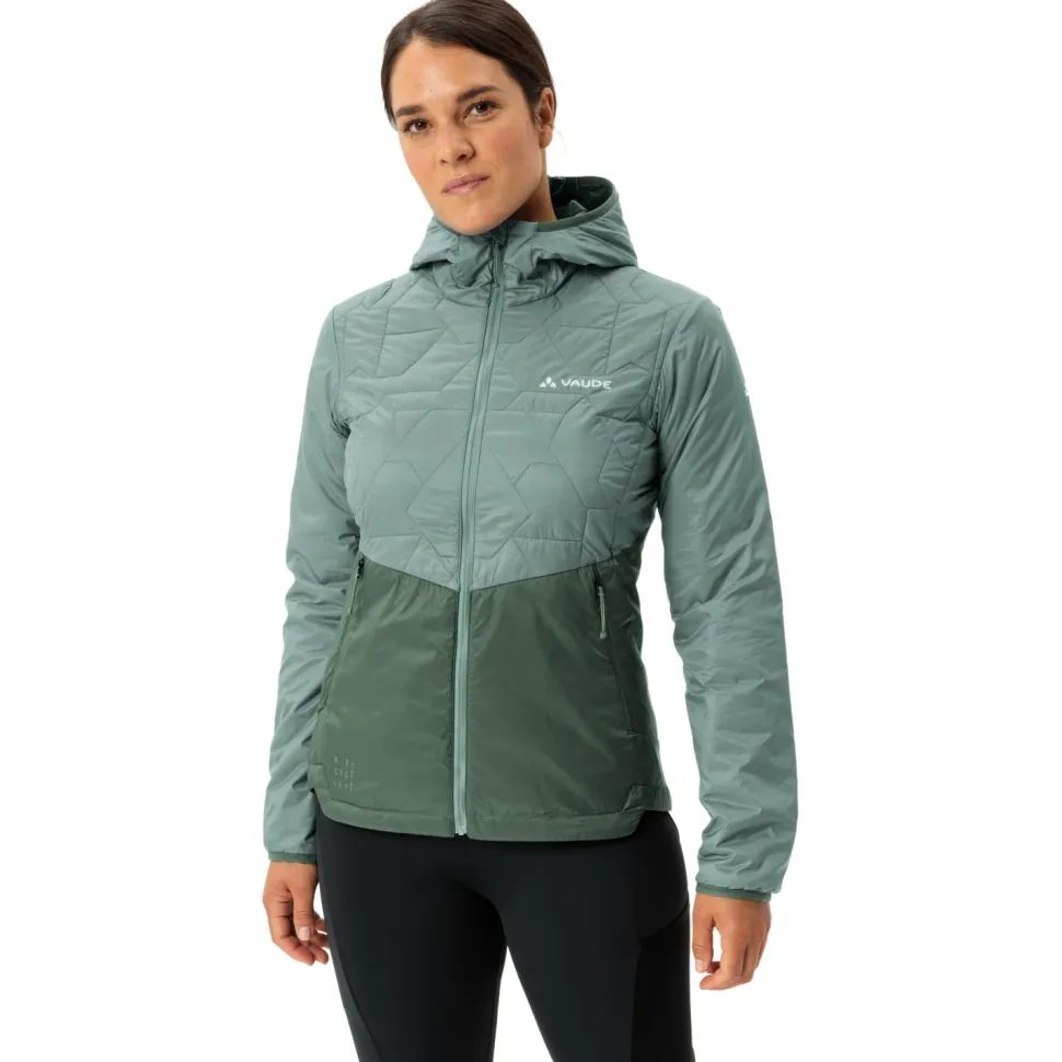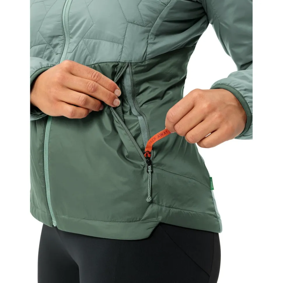 Die Women’s Freney Jacket VI Kunstfaserjacke von Vaude ist eine leichte Isolationsjacke für sportliche Bergtouren. Ihr warmes und atmungsaktives Hauptmaterial ist überwiegend aus recyceltem Polyamid hergestellt. Die ebenfalls recycelte PrimaLoft Silver Eco Füllung ist sehr leicht und wärmt dennoch sehr effizient und auch bei Nässe. Die zusätzliche Imprägnierung mit dem nachhaltigen Vaude Eco Finish lässt die Wassertropfen auch bei anhaltender Feuchtigkeit abperlen.