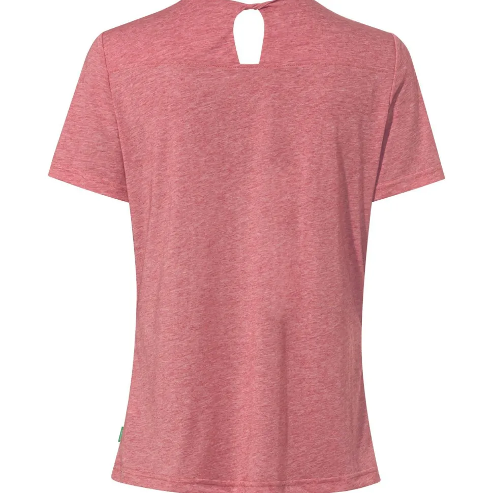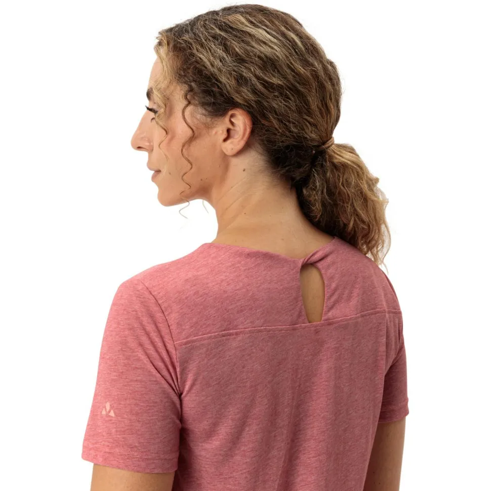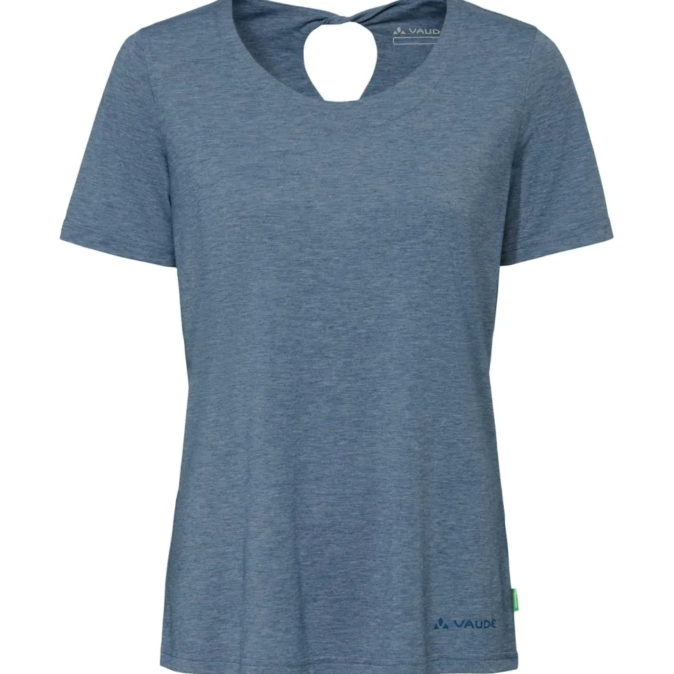 Das Women’s Skomer Hiking T-Shirt II von Vaude ist ein feminines, detailreiches Funktionsshirt zum Wandern und für den Alltag. Sein Hauptmaterial besteht aus recyceltem Polyester mit einem 20-prozentigen Anteil Lyocell. Letzteres ist eine Zellulosefaser, die aus geprüft nachhaltigem Holz gewonnen wird. Diese vollständig biologisch abbaubaren Fasern tragen sich seidenweich, haben feuchtigkeitsregulierende Eigenschaften und sorgen für ein angenehm kühles Tragegefühl. Dank des Zusammenspiels mit den Kunstfasern ist das Gewebe des Skomer Hiking T-Shirts außerdem schnelltrocknend und geruchshemmend.