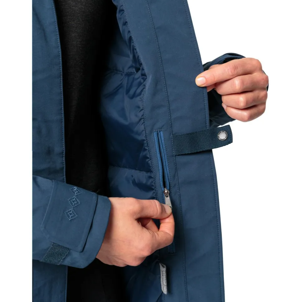 An kalten Tagen liefert der Women’s Skomer Wool Parka II von Vaude sicheren Wetterschutz! Der Mantel ist wind- und wasserabweisend. Mit der Wollwattierung bleibst Du zuverlässig auf Temperatur. An besonders ungemütlichen Tagen kommt die verstellbare Kapuze zum Einsatz, die Du auch abnehmen kannst. Praktisch für Kleinigkeiten kannst Du in den beiden Taschen verstauen. Verstellbare Bündchen optimieren die Passform. Mit dem längeren Schnitt sind empfindliche Zonen optimal bedeckt. Ein klassischer Allrounder für Alltag und Freizeit, der Skomer Wool Parka II!