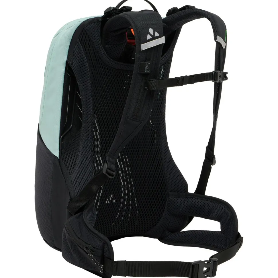 Der Women’s Trailvent 10 von Vaude ist ein kompakter und top ausgestatteter Rucksack fürs Biken und Mountainbiken. Sein robustes und wetterfestes Hauptmaterial aus recyceltem Nylon hergestellt. Für den maximalen Tragekomfort sorgen die anatomisch geformten ErgoShape Schultergurte, der ideal belüftetende Aeroflex 3D Netzrücken, der gepolsterte Hüftgurt mit Tasche und die anpassbare Rückenlänge.