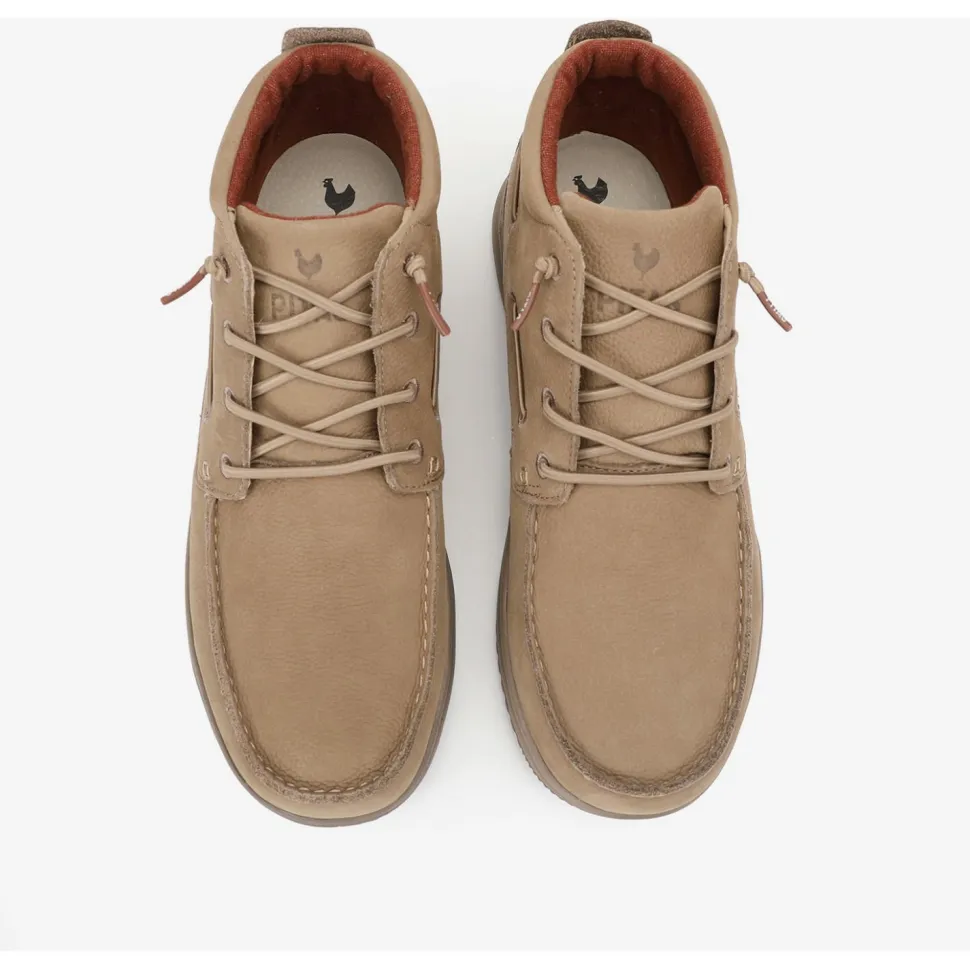 Die Timor Leather Freizeitstiefel von Walk-in-Pitas erinnern ein wenig an Bootsschuhe, geben Dir mit ihrem knöchelhohen Schnitt und der Elastikschnürung aber deutlich mehr Halt und Sicherheit. Dennoch verleihen sie Dir ein elegantes Äußeres.