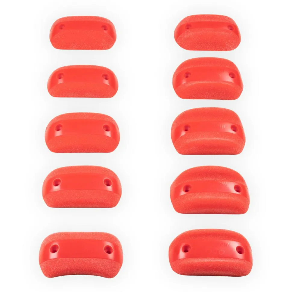 Möchte man seine Kraft steigern und seine Boulder- und Kletterfähigkeiten verbessern, ohne dass einem gleich die Puste ausgeht, dann liegt man mit dem Set Dojo 4 von Wataaah genau richtig. Dynamische Bewegungsabläufe und Technik können mit den Griffen verbessert werden. Das Set besteht aus zehn Griffen, die sich perfekt für alle überhängenden Wände mit 20° bis 45° Neigung eignen. Egal ob zu Hause an der eigenen Trainingswand oder als Bestandteil einer Spray Wall montiert bleibt das Training mit den Griffen abwechslungsreich. Wie in einem Dojo kommt man mit Disziplin und viel Übung seinen Zielen näher!