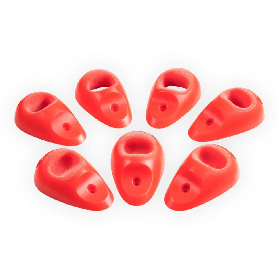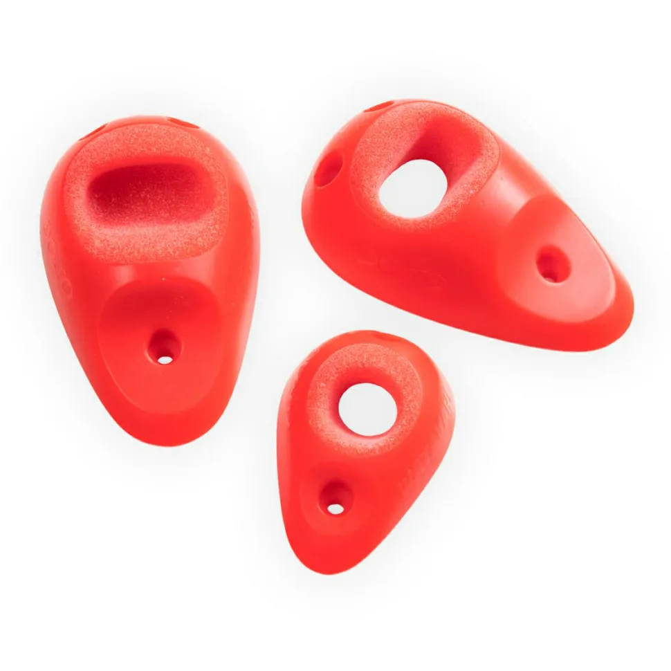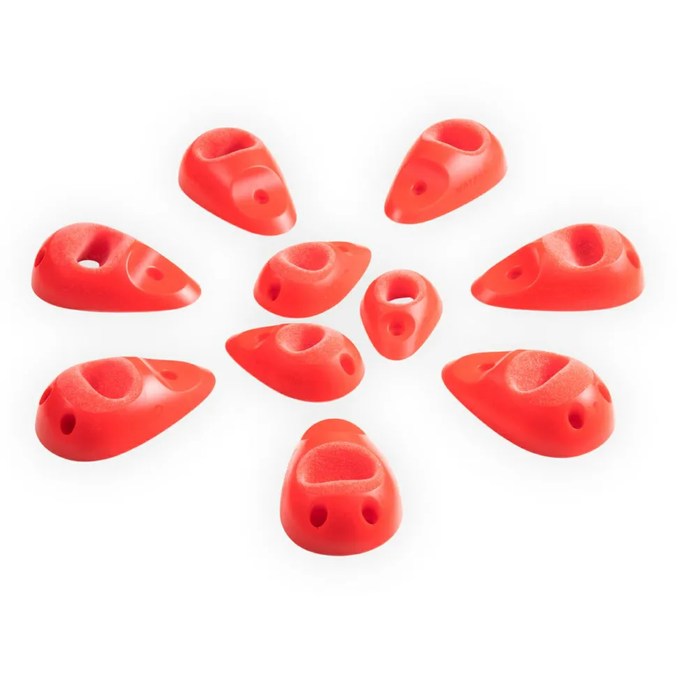 Das Dojo 6 Set von Wataah besteht aus zehn Lochgriffen, welche Du einfach mit normalen Schrauben an Deiner Boulderwand befestigst. Die Griffe sind ergonomisch geformt und besitzen eine sehr feine Oberfläche. Diese schont die Haut, wodurch die Dojo-Griffe ideal für das tägliche Training geeignet sind. Sie eignen sich für den Anfänger ebenso wie für den Profi und können an Überhängen von 20 bis 45° Neigung verwendet werden.