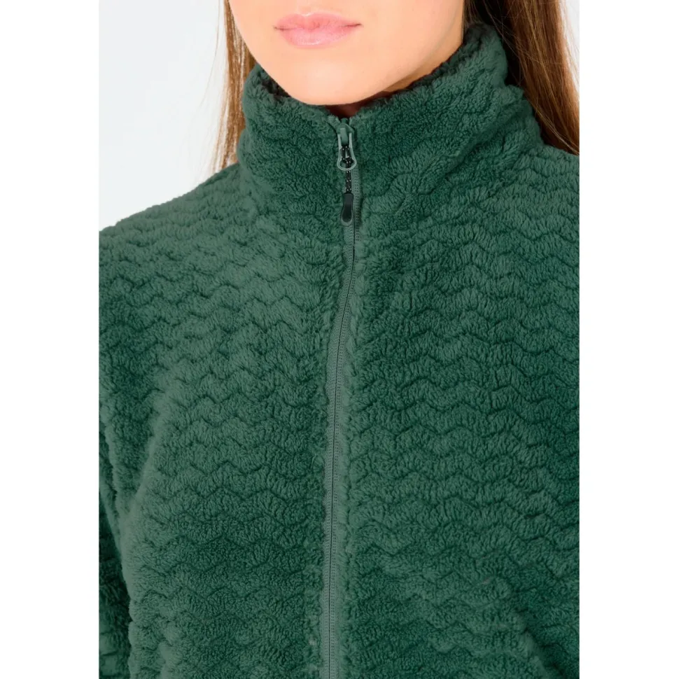 Die Jacke aus Jacquard-Fleece bietet Langlebigkeit und Wärme. Mit einer Rückenlänge von 68 Zentimetern bietet sie ausreichend Schutz vor kühlem Wind, während das Fleece-Material für ein angenehmes Tragegefühl sorgt. Die Konstruktion der Jacke bietet Unterstützung und Wärme bei verschiedenen Aktivitäten.