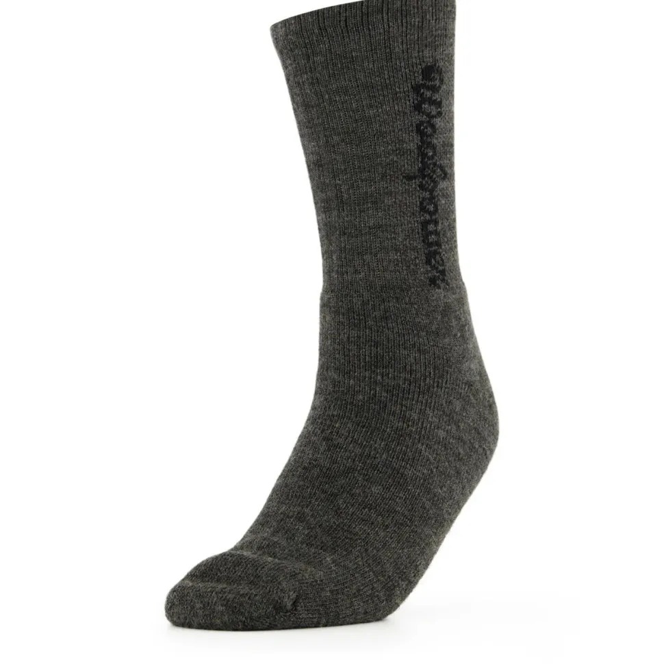 Trekkingsocken aus dem Hause Woolpower: Die Sport Socks 400 Logo mit eingestricktem Woolpower Logo auf dem Bündchen! Durch den cleveren Materialmix sind die Socken langlebig und robust, der hohe Merinowollanteil sorgt zudem dafür, dass unangenehme Gerüche vermindert werden! Zudem ist die Socke problemlos nach der Tour bei 60°C in der Maschine waschbar. Die flachen Nähte und das gerippte Bündchen ermöglichen einen tollen Tragekomfort, so sind die Socken stets ein angenehmer Begleiter auf der nächsten Wandertour. Perfekte Trekkingsocken die in Schweden gefertigt werden kommen hier mit den Sport Socks 400 Logo von Woolpower!