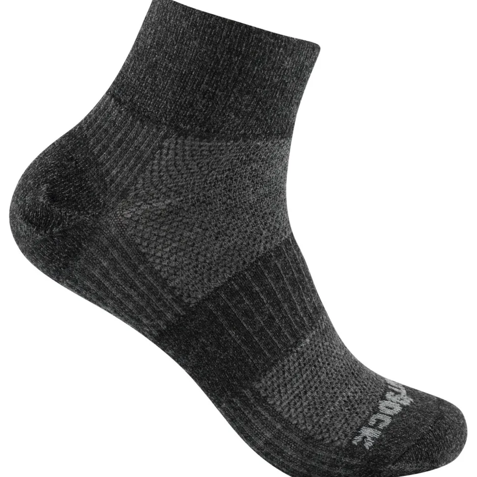 Die hochwertigen Coolmesh II Merino Quarter Multifunktionssocken von Wrightsock setzen auf die fortschrittliche Funktionsfaser Dri-Wright, die sich auf der Innenseite zu einem hohen Anteil wiederfindet. Diese hautschonende Faser reguliert effektiv die Feuchtigkeit. Die äußere Socke besteht aus einer Mischung aus Merinowolle und Kunstfaser, was eine höhere Belastbarkeit und Flexibilität gewährleistet.