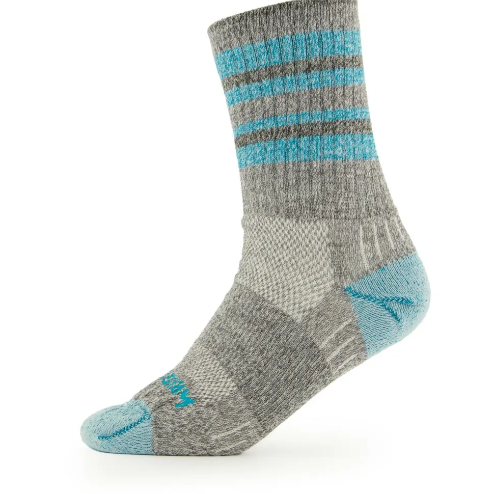 Bei mehrtägigen Wandertouren oder Wanderungen mit vielen bergauf und bergab Passagen kommen die Escape Crew Socken von Wrightsock wie gerufen. Diese Socken haben eine doppelte Polsterung aus Frottee zwischen den beiden Sockenlagen und bieten Dir damit einen stabilen Halt in Deinen Wanderschuhen sowie einen tollen Tragekomfort. Darüber hinaus bestehen sie aus einem dickeren Kunstfaser-Material, wodurch sie besonders abriebfest und strapazierfähig sind.