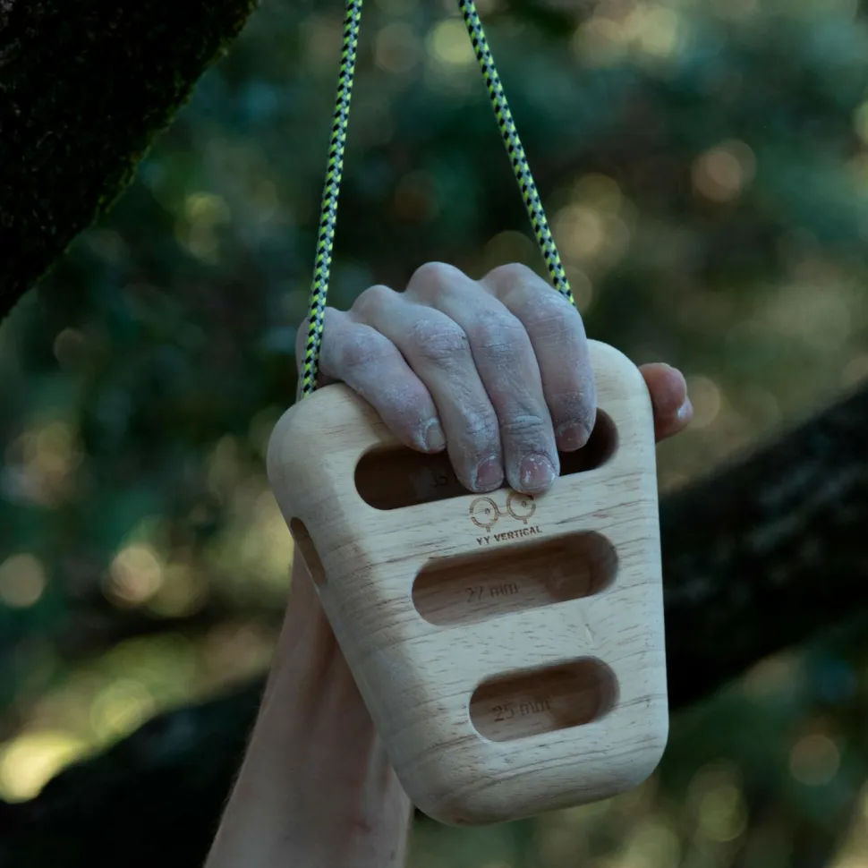 Zum Aufwärmen und Trainieren – die Rockys von YY Vertical sind etwas für jeden Kletterer! Die beiden Griffe sind schnell und leicht aufgehängt, egal ob drinnen oder draußen. Sie bestehen aus recyceltem Gummiholz und haben eine Oberfläche, die angenehm anzufassen ist. Mit dem zweiseitigen Design hast Du fünf verschiedene Griffmöglichkeiten. Du kannst einzelne Finger und Fingergruppen trainieren sowie Zug- und Federungsübungen machen.