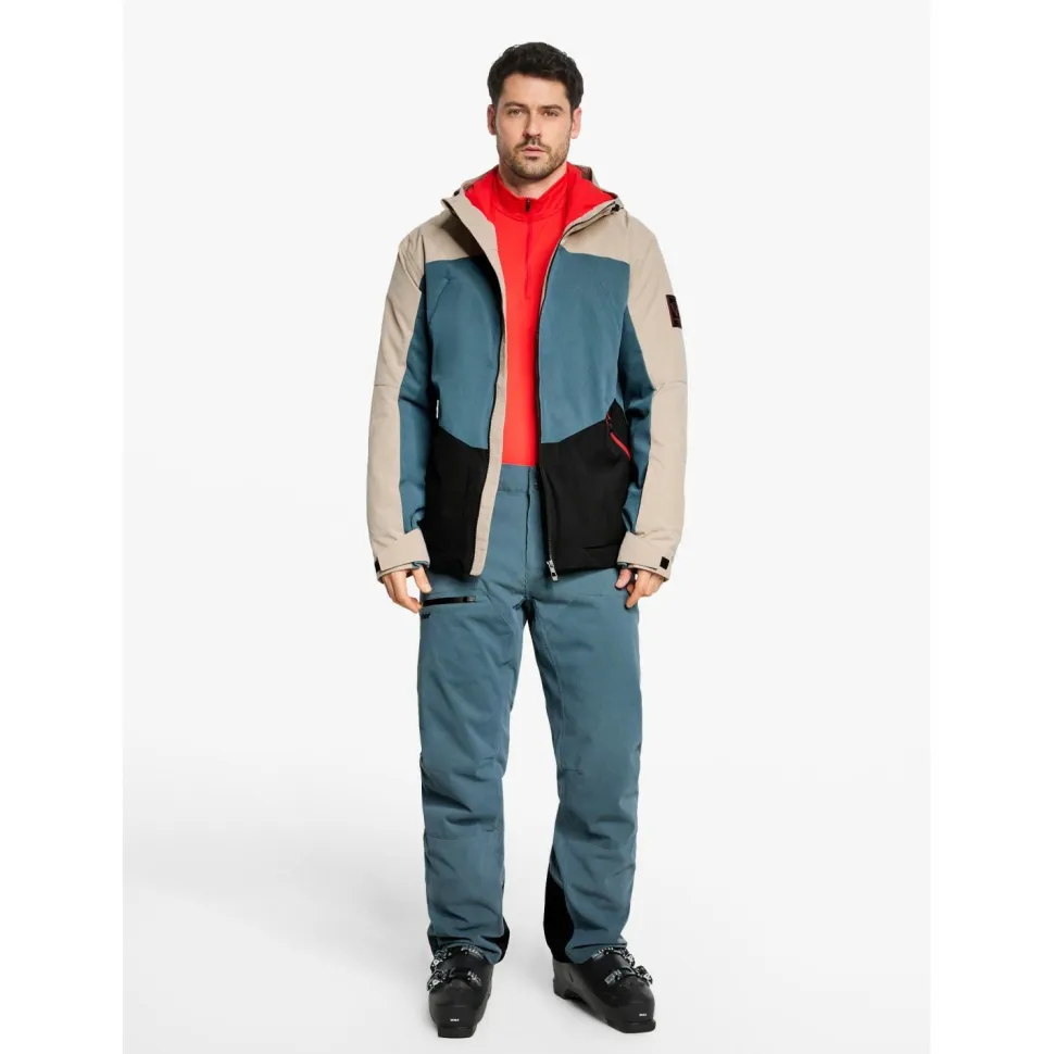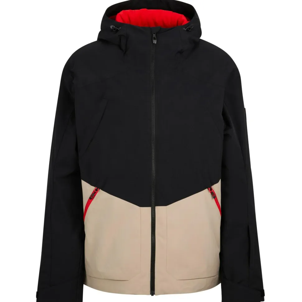 Gefertigt aus strapazierfähigem wasser- und winddichten Material mit wärmender Wattierung, sorgt die Jacke für effektive Isolierung an kalten Tagen. Das elastische Innenfutter unterstützt die Bewegungsfreiheit – besonders wichtig bei sportlichen Aktivitäten im Schnee. Dank der festen, verstellbaren Funktionskapuze ist der Kopfbereich bei Wind und Wetter bestens geschützt. Eine Brusttasche mit Reißverschluss bietet zusätzlichen Stauraum für wichtige Kleinigkeiten, während die integrierte Skipasstasche schnellen Zugriff am Lift ermöglicht. Die elastischen Ärmelinnenbündchen verhindern das Eindringen von Kälte und sorgen für einen guten Sitz.