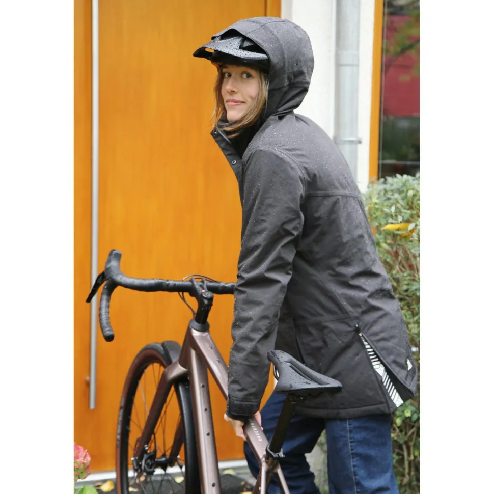 Mit dem 4-Way-Stretch-Material und den vorgeformten Ärmeln bietet der Parka maximale Bewegungsfreiheit – egal ob Du auf dem Bike sitzt oder zu Fuß unterwegs bist. Praktische Details wie die helmtaugliche, verstellbare Kapuze und die integrierten Handgamaschen mit Daumenschlaufen machen den Parka besonders alltagstauglich. Die regulierbare Saumweite mit Reißverschlüssen sorgt für eine flexible Passform und die nötige Bewegungsfreiheit auf dem Fahrrad, während Klettverschlüsse am Handgelenk das Eindringen von kalter Luft und Feuchtigkeit verhindern.